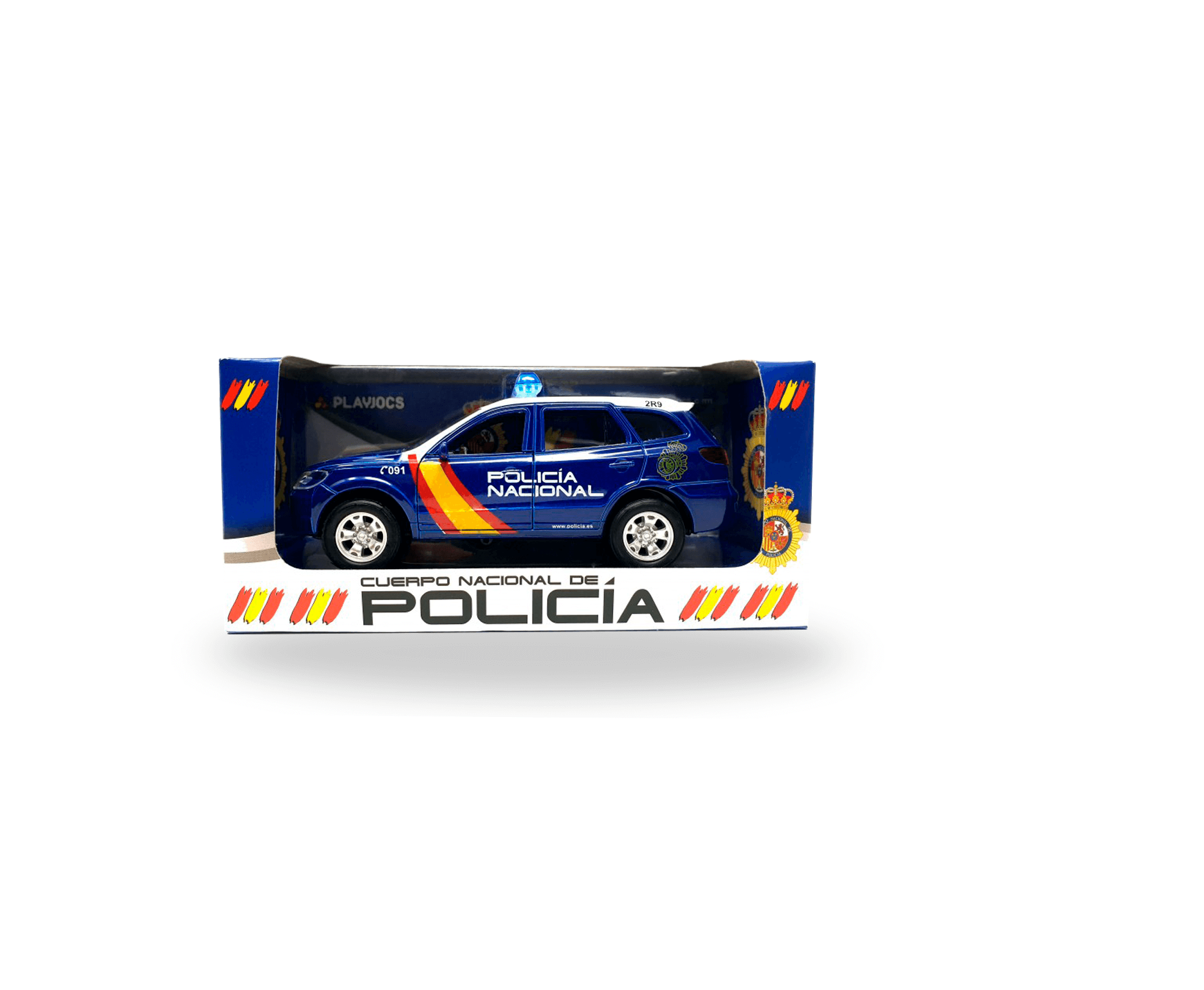 Fantástica réplica metálica del vehículo radiopatrulla del Cuerpo Nacional de Policía. Un modelo a escala de 13,8 cm, fabricado en metal con partes de plástico, que cuenta con apertura de puertas delanteras y sistema de rueda libre. Incluye los logotipos oficiales, el indicativo de emergencia 091 y viene en su caja de exhibición, convirtiéndolo en el detalle perfecto para coleccionistas o como regalo.